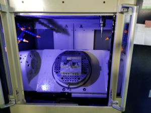 3次元CAD/CAMを用いて製品を設計し、材料の選定を行い、5軸加工機用のカッターパスを出力して、実際に加工いたしました。